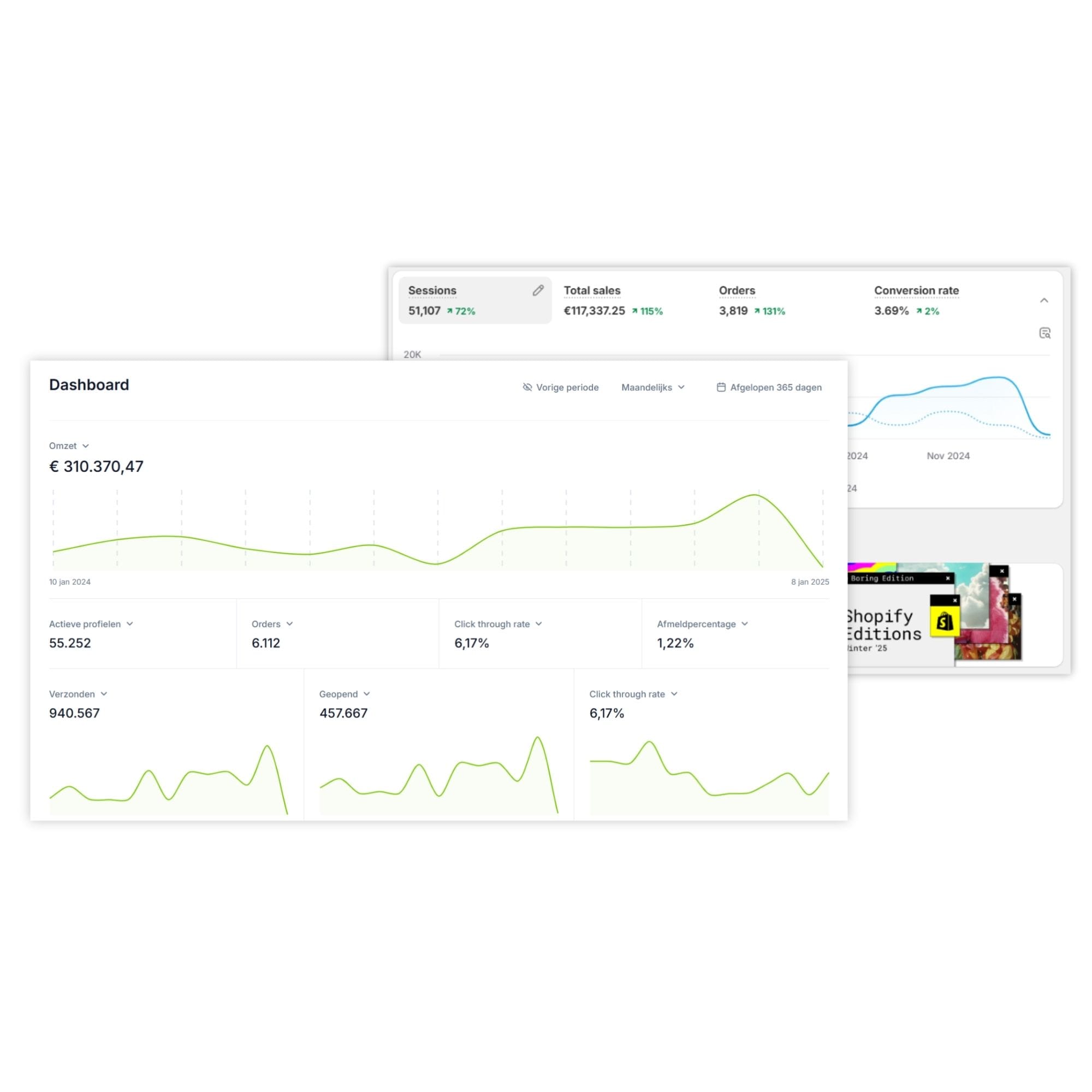 Als gecertificeerd partner van Reloadify helpen wij e-commerce bedrijven in de Benelux met resultaatgerichte e-mailmarketing. Met bewezen strategieën en succesvolle campagnes voor 50+ klanten, zorgen we dat jouw e-mails niet alleen geopend worden, maar ook converteren. Van slimme flows tot conversieboostende campagnes – wij halen het maximale uit je e-mailmarketing.